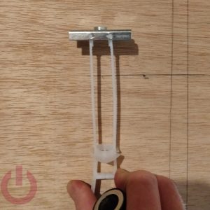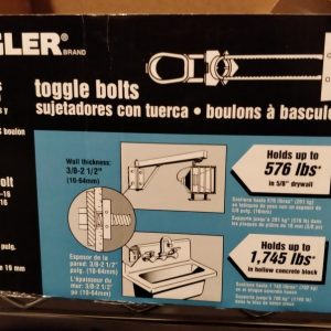 Grab your box of TOGGLER anchors and follow the directions to install the toggle bolt. I went with the massive BCs so this means drilling a ¾” hole, inserting the toggle, tightening it down, and snapping off the leads. Once it is in place, screw in the bolts without any washers – those will come later. We need to ensure that the mount will slide over the bolt for now.