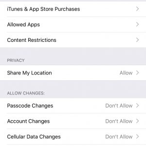 Content & Privacy Restrictions previously found under Settings – > General -> Restrictions is now in Screen Time. Allowances around application installation, deletion, in-app purchases, content restrictions, and application change allowance restrictions.