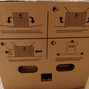 Expectedly, the box is large and very heavy – 117.8lb (53.45kg) to be exact. So, some planning is required when you know the SVS SB-4000 is going to be delivered. Arrange to have a friend or family member stop by to help move it to wherever it will sit; your back will thank you, trust me. Also, as much as it pains me to say this, follow the unpacking instructions. It will save the box for later use, and stop you from punching through the cone as you push the 102.3lb (46.4kg) subwoofer out of the box. It is obvious that SVS put a lot of thought into the packaging. It protects the contents perfectly (should FedEx decide that rolling the box is the best way to get it up the front porch stairs), and because there is cardboard encasing the foam shock absorber on the bottom making it easier to slide the SB-4000 most of the way into place.