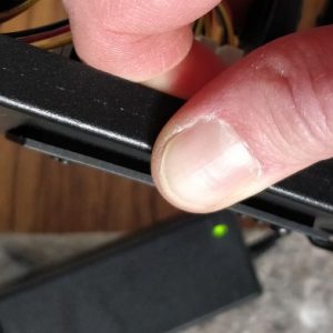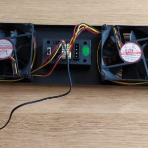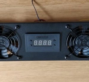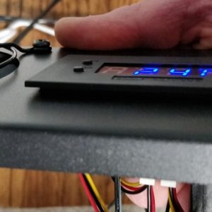 The thermal controller supports two modes: always on, and turn on at X temp – off at Y temp. The second mode does not work quite right because the temperature probe cannot be placed far enough away from the intake of cooler air to remain unaffected by it, or get a good read of the ambient cabinet temperature. This makes the controller cycle on/off/on/off… at the bottom end of the regulated temperature span and not turn on until the cabinet is much hotter than the configured “on” temperature. The video above does not capture these issue directly, but we can see how the temperature fluctuates when the fans are running as well as get some sense of much noise they generate.