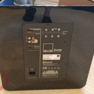There are two finishes available for the SB-3000: black ash and piano gloss. The gloss is $100 more, and it is just gorgeous. My finish preferences aside, there is plenty to admire about the form factor. Firstly, while a hefty 54.5lb / 24.7kg, it is not so heavy (despite the “team lift” markings on the box) that you must arrange a helper to move it – which is nice. Control and connectivity options are conveniently located around the back, which also includes a USB port for SVS’s wireless subwoofer connector. This is sure to be handy if your crawl puts it in an inconvenient location.